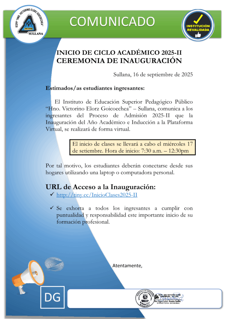 El Instituto de Educación Superior Pedagógico Público “Hno. Victorino Elorz Goicoechea” – Sullana, realiza el proceso de admisión de manera presencial para los programas de estudios o carreras profesionales autorizados o revalidados, en cumplimiento de los principios de mérito, transparencia y equidad, asimismo, se debe implementar el uso de normas y herramientas de control, garantizando la legitimidad del proceso y eviten la suplantación de identidad de los postulantes.