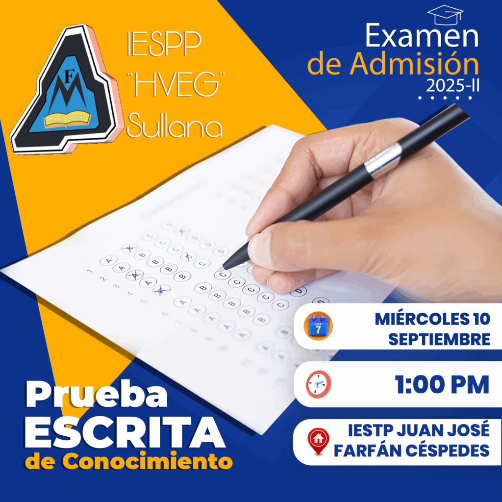 El IESPP “Hno. Victorino Elorz Goicoechea” informa a todos los postulantes que la Prueba Escrita de Conocimientos del Examen de Admisión se realizará el: