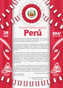 Querida comunidad educativa del IESPP “Hno. Victorino Elorz Goicoechea”, estimados ciudadanos de la provincia de Sullana y compatriotas de todo el Perú: En este mes